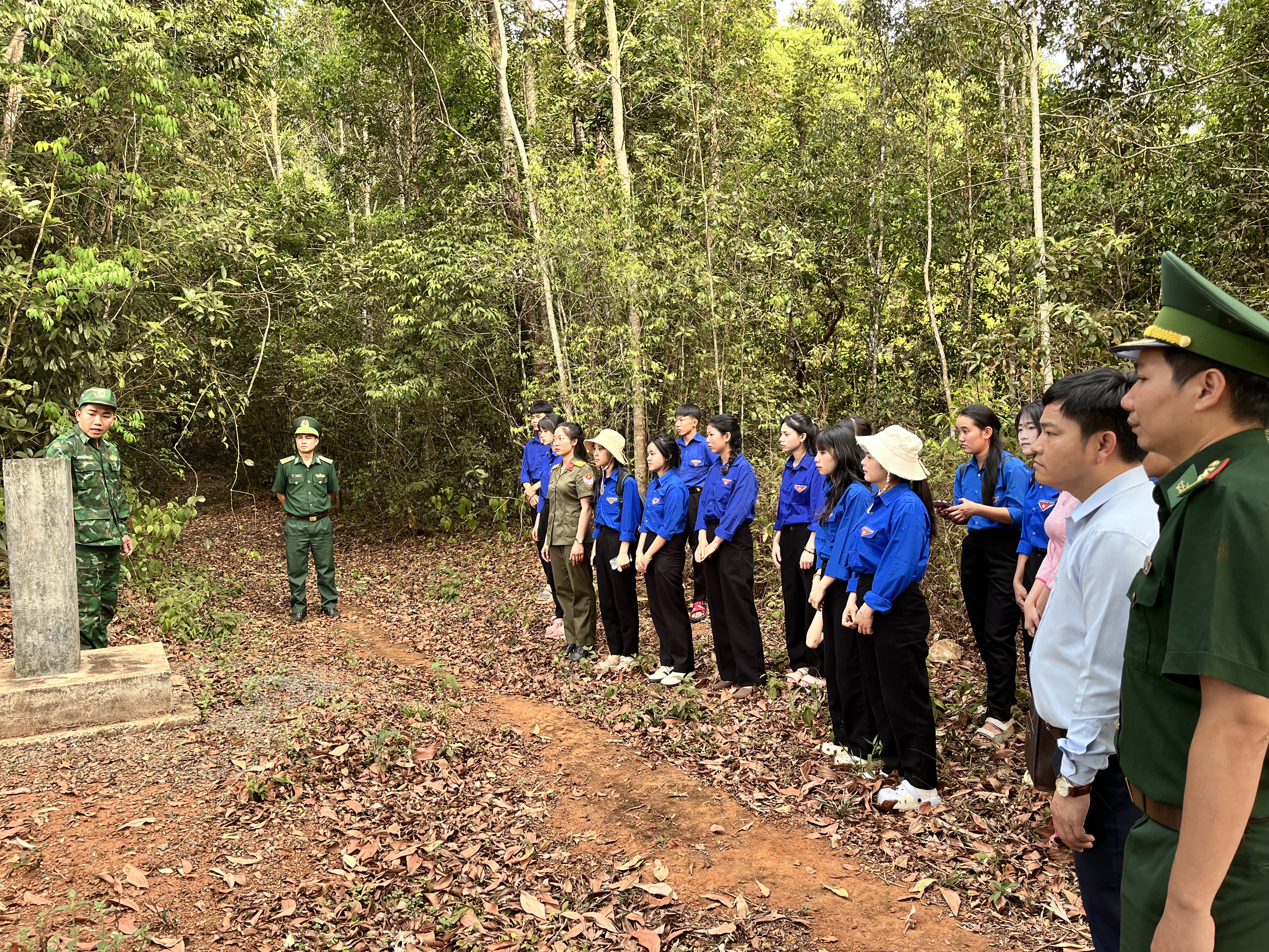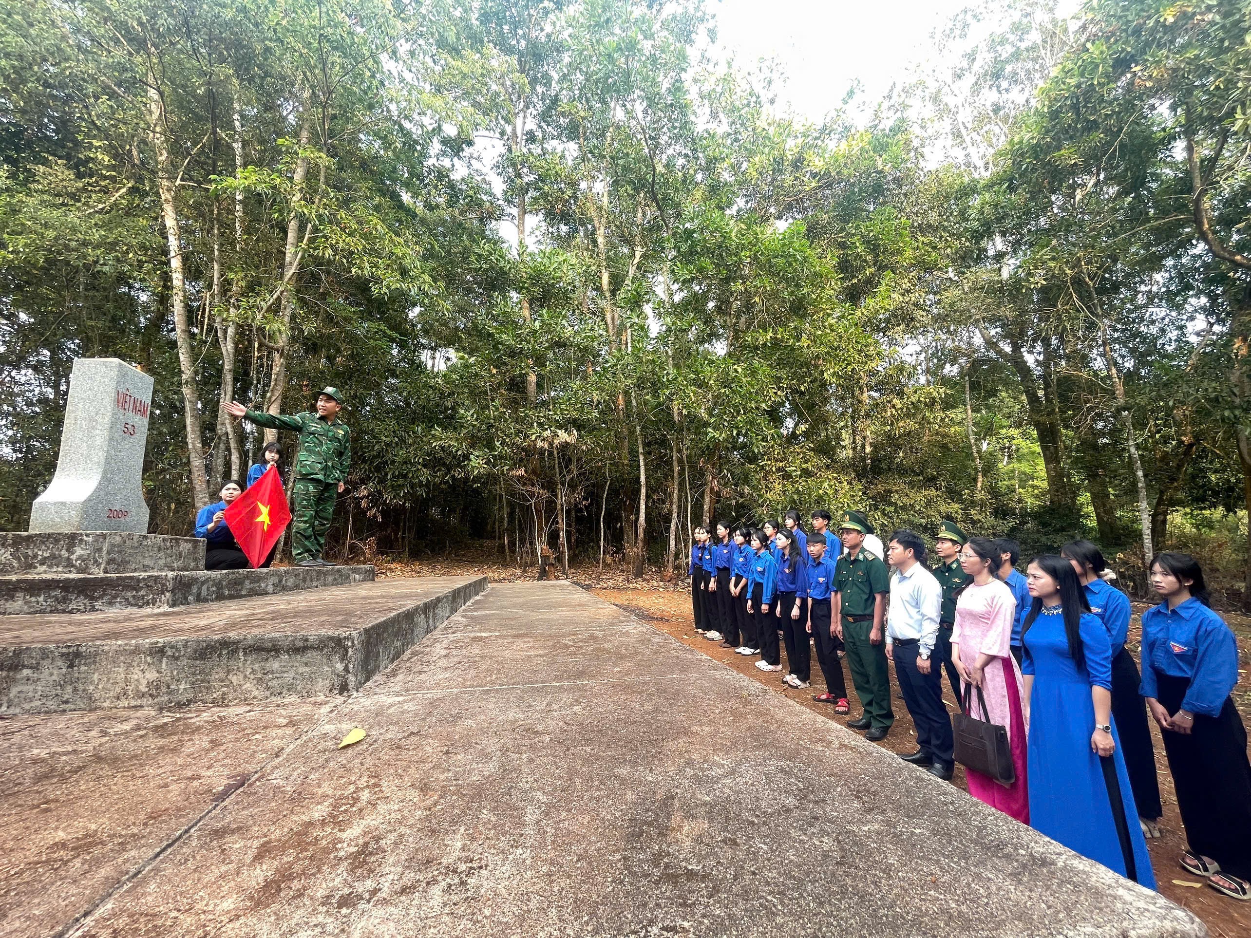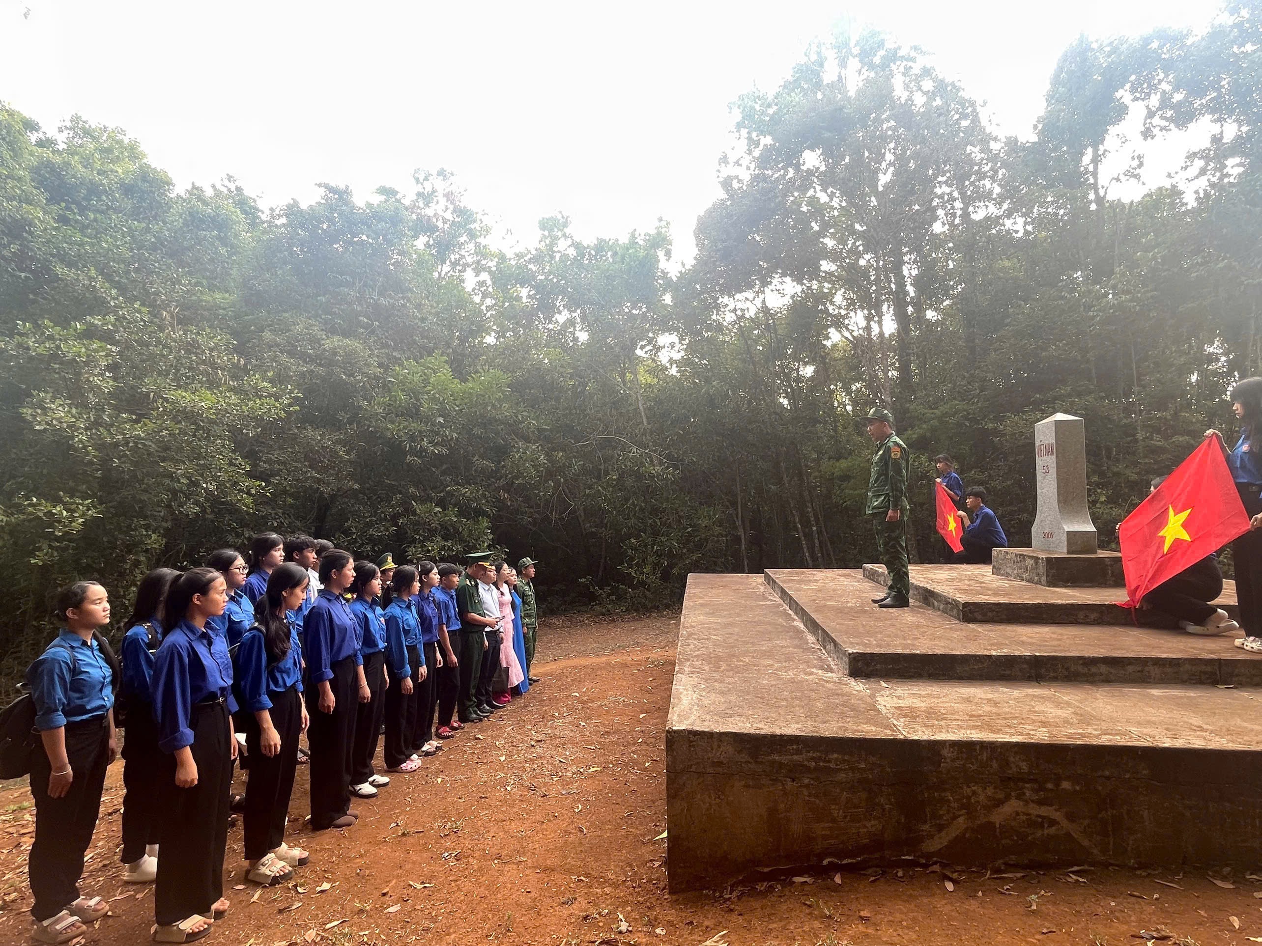Điểm nhấn đặc biệt và cũng là khoảnh khắc thiêng liêng nhất của chuyến đi chính là hoạt động tham quan cột mốc biên giới. Lần đầu tiên được tận mắt chứng kiến và đứng trước cột mốc chủ quyền của Tổ quốc, mỗi đoàn viên đều không khỏi xúc động, tự hào. Khoảnh khắc ấy đã khắc sâu trong tâm trí các em về giá trị của độc lập, chủ quyền và trách nhiệm của mỗi công dân trong việc gìn giữ, bảo vệ từng tấc đất thiêng liêng của đất nước.