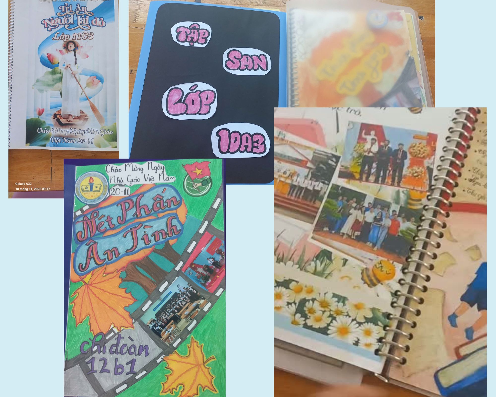 Mỗi trang tập san: là những bài thơ, bài văn, những nét vẽ, bức tranh minh họa được viết tay nắn nót, được trình bày tỉ mỉ, gửi gắm lời cảm ơn chân thành, sâu sắc nhất. Từ bìa sách được làm thủ công bằng kỹ thuật cuộn giấy nghệ thuật (quilling), đến những bức ảnh kỷ niệm, tất cả đều là khoảnh khắc đáng nhớ về mái trường và thầy cô.