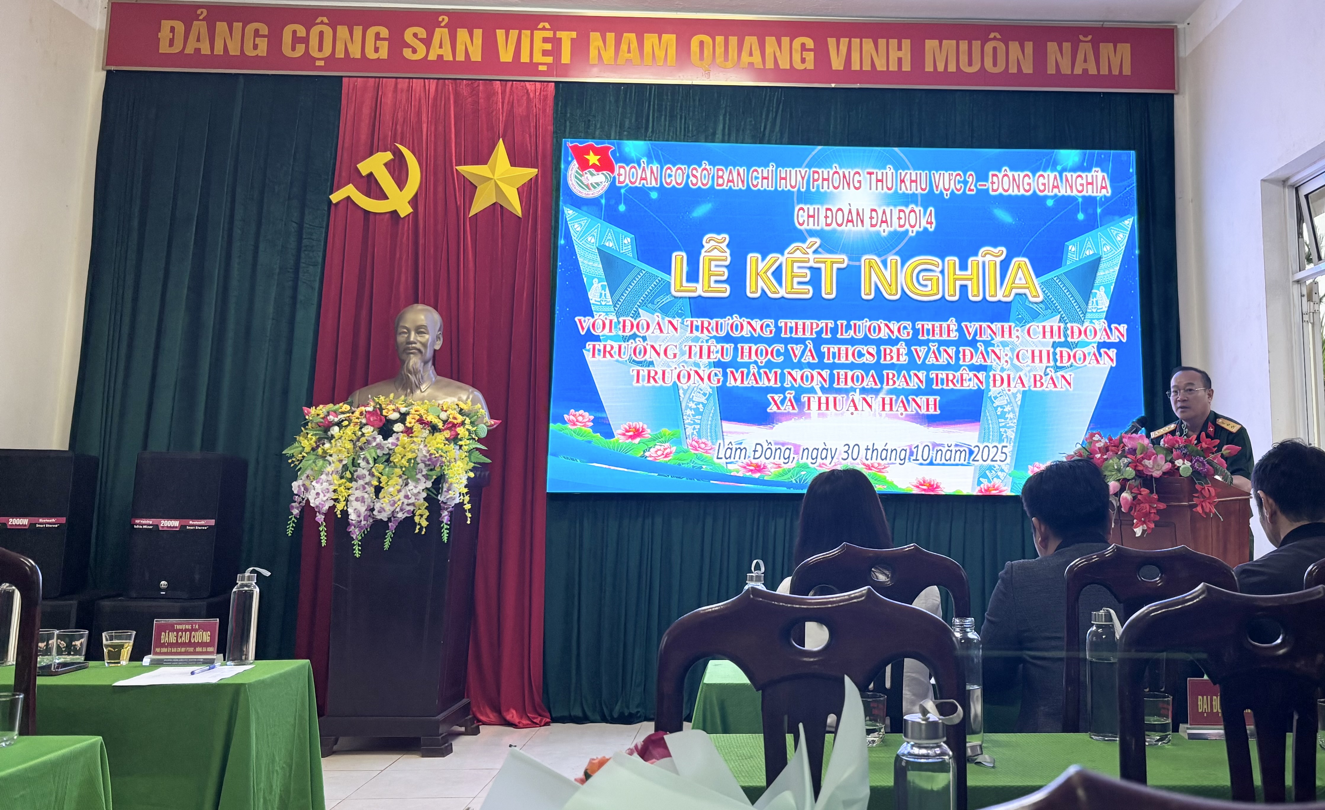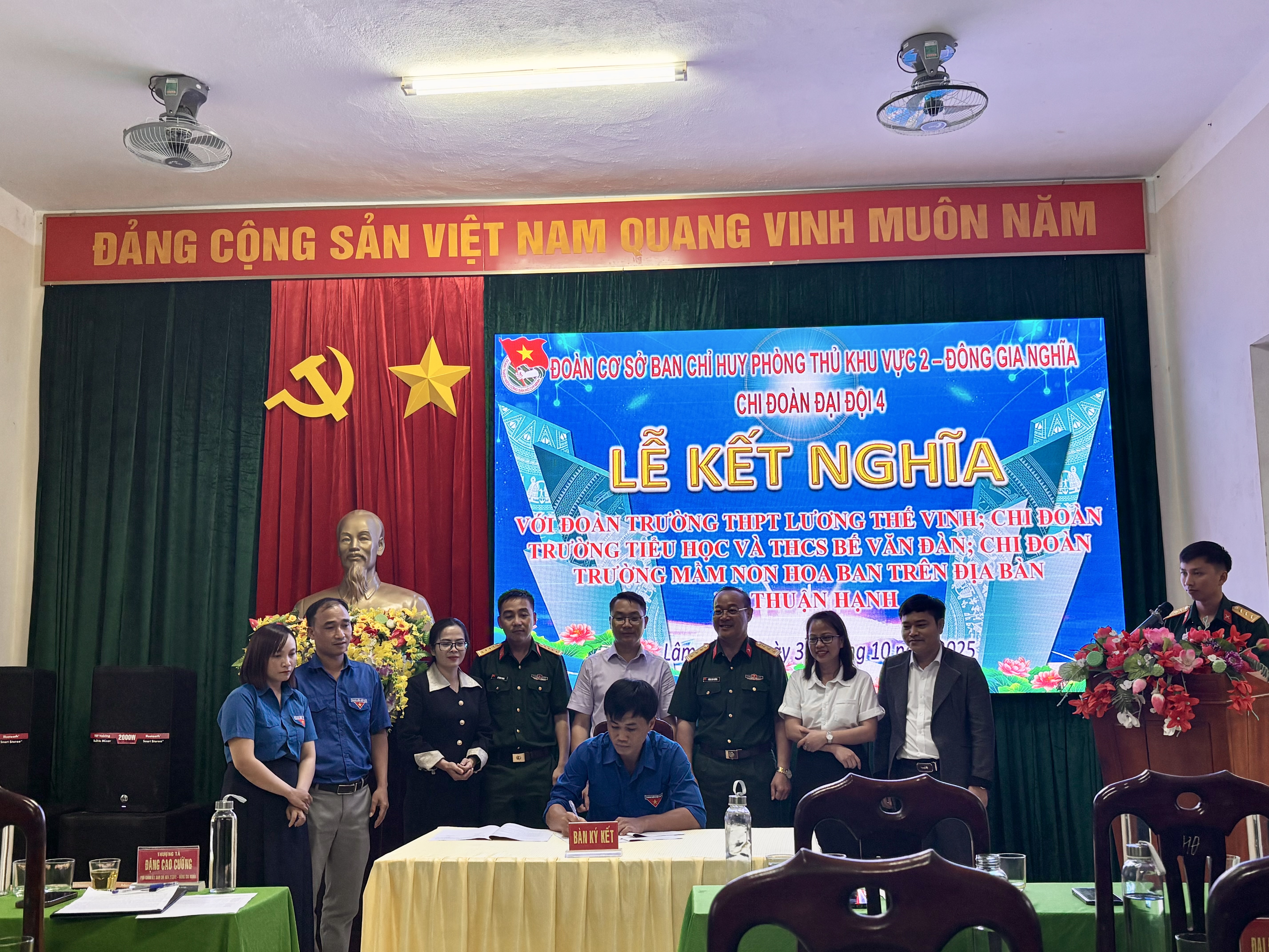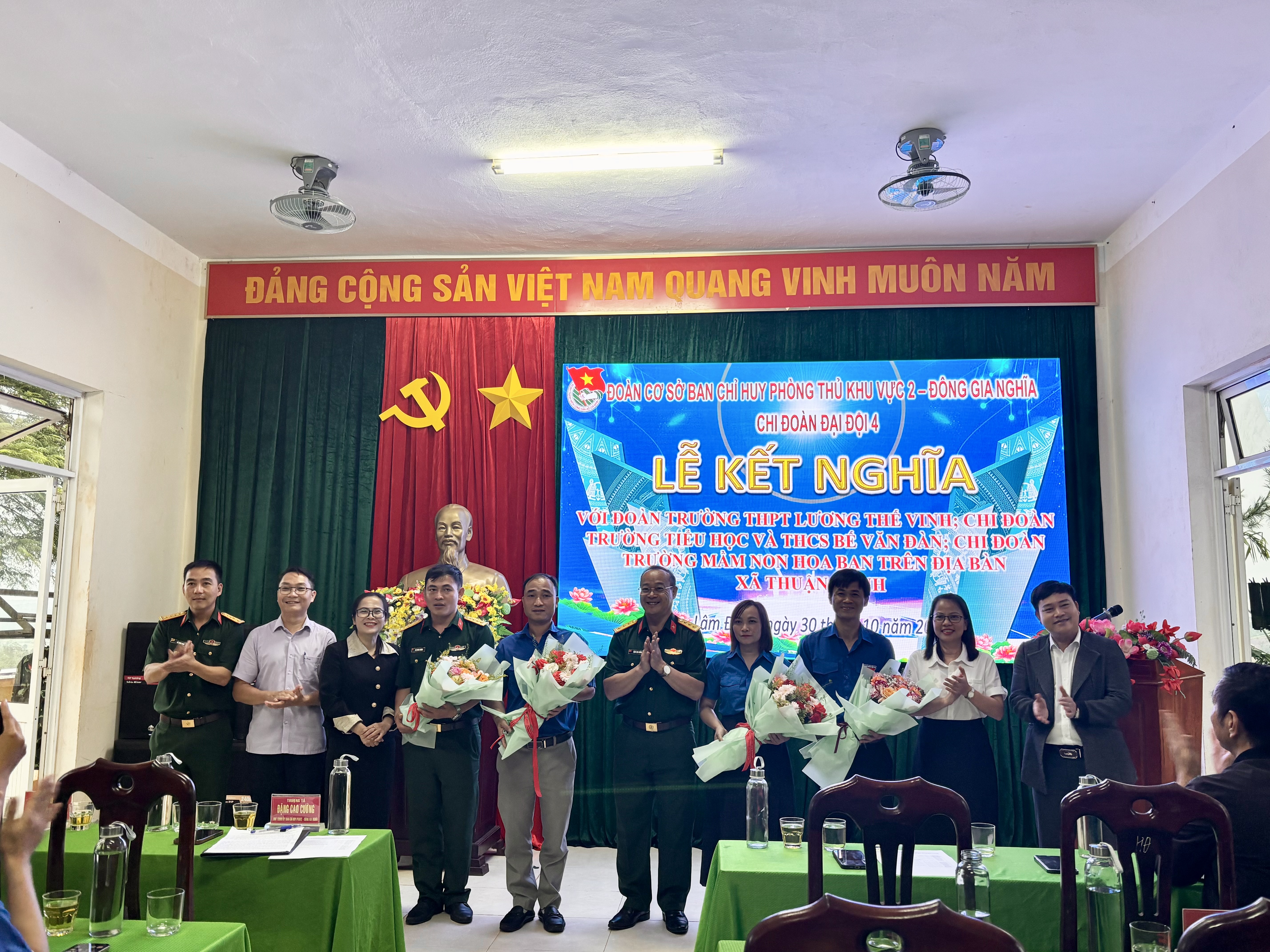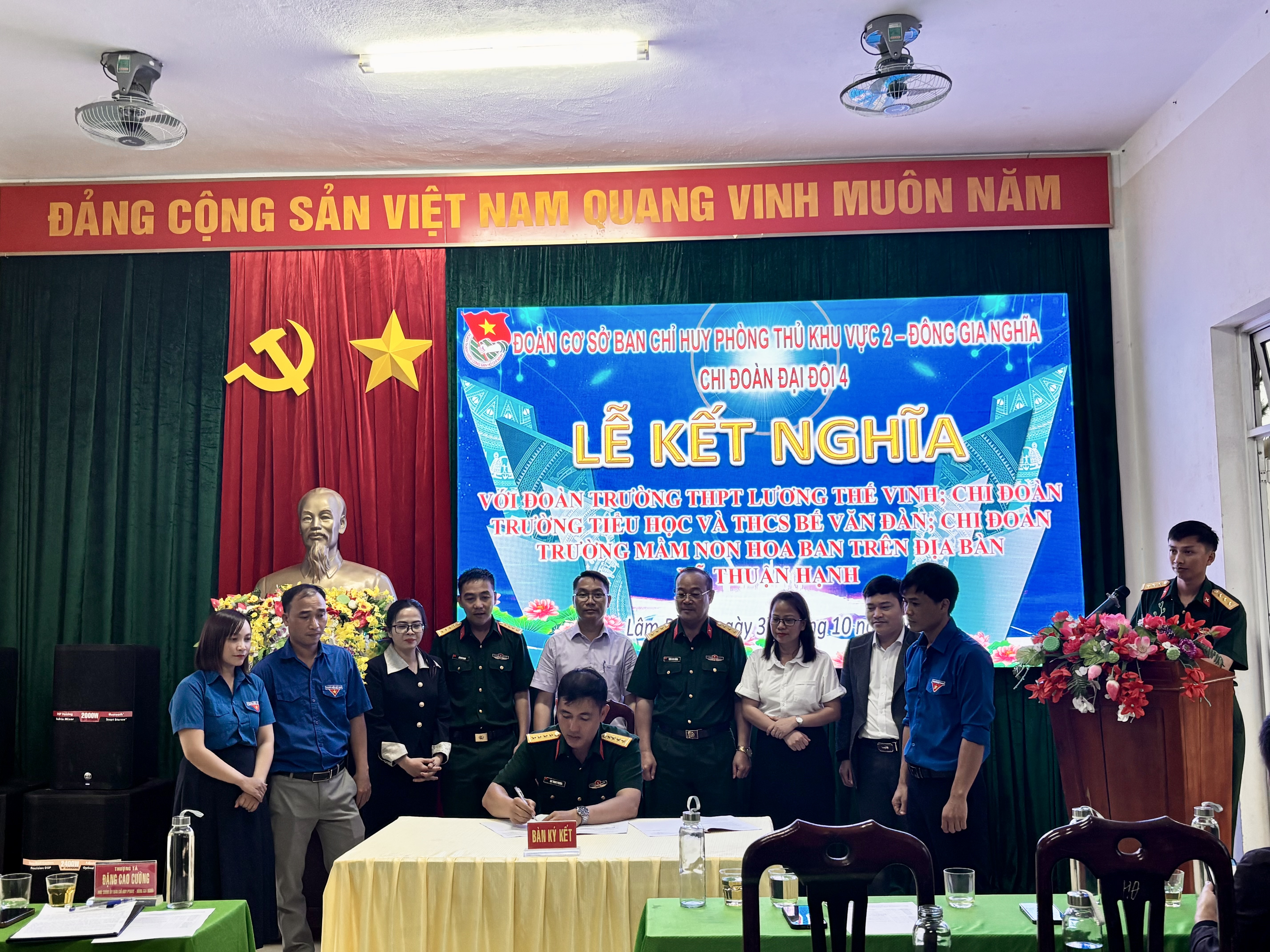 Chiều ngày 31/10/2025, tại Đại đội Bộ binh 4 đã diễn ra Lễ kết nghĩa giữa Đoàn trường THPT Lương Thế Vinh – Thuận Hạnh và Chi đoàn Đại đội 4. Buổi lễ diễn ra trong không khí trang trọng, ấm áp, thể hiện tinh thần đoàn kết, gắn bó giữa lực lượng vũ trang và nhà trường.