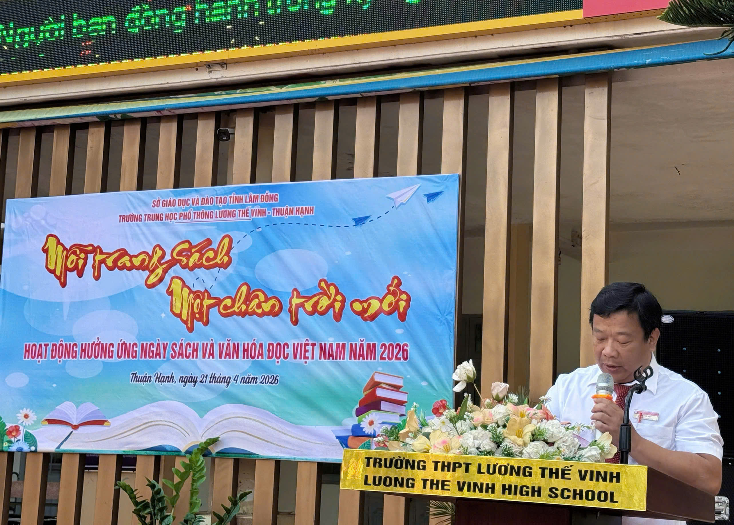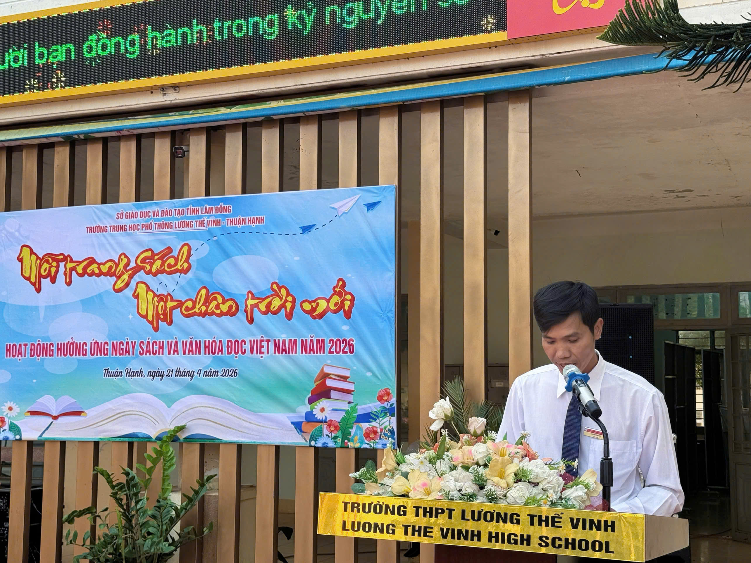Thầy cũng gửi lời nhắn nhủ thân tình đến toàn thể học sinh: “Thầy mong rằng, thông điệp ‘Mỗi trang sách một chân trời mới’ sẽ không dừng lại ở ngày hội hôm nay. Mỗi trang sách các em đọc sẽ là một viên gạch xây nên nền tảng vững chắc cho ước mơ, giúp các em vươn xa hơn nữa từ chính mảnh đất Thuận Hạnh thân yêu này.”