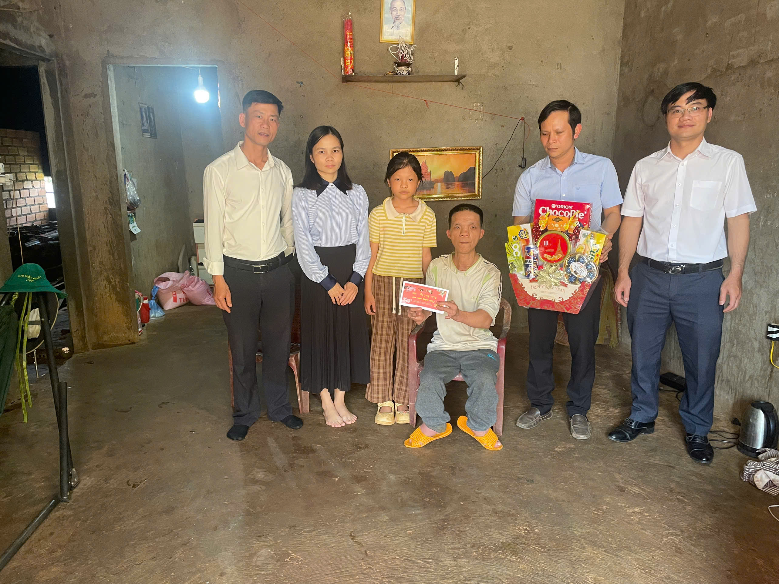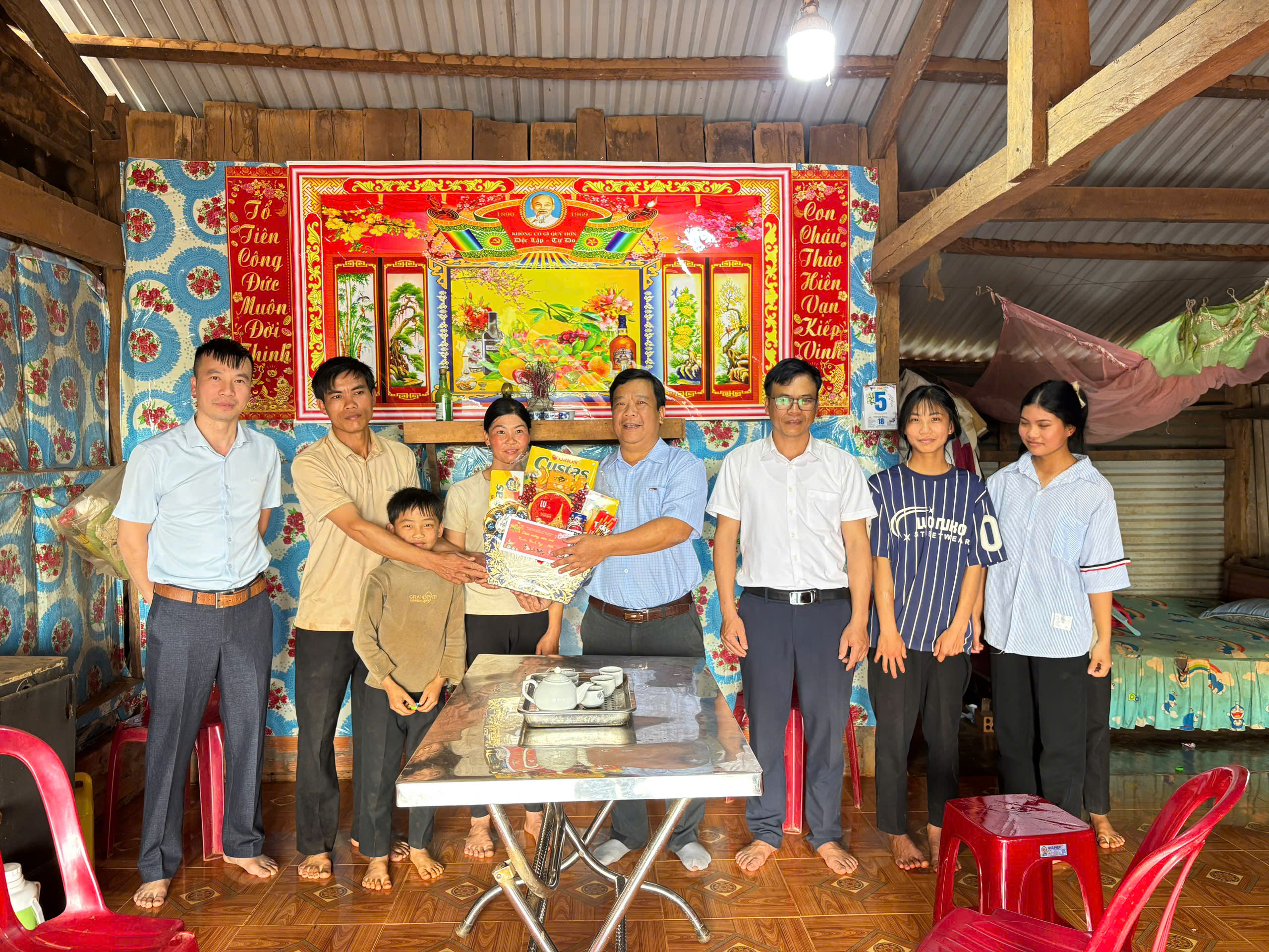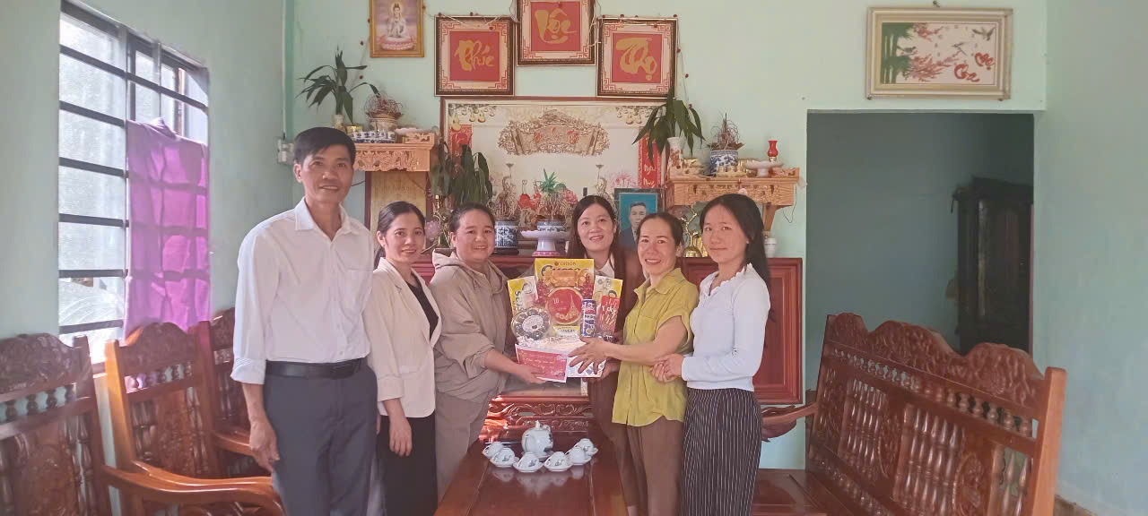 Ảnh 1: Ban lãnh đạo trao quà và thiệp chúc mừng tại gia đình giáo viên